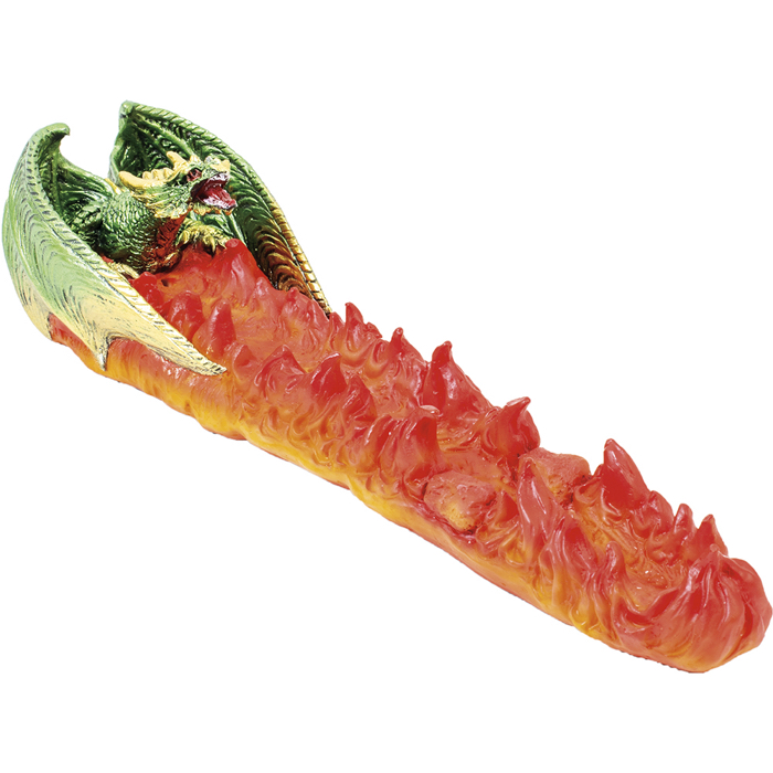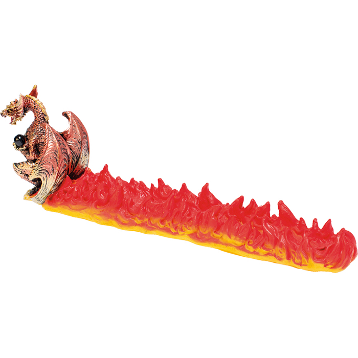 Fujima Polystone Incense Burner - Red Sitting Dragon Flames