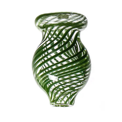 Retti style bubble cap with a color accented spiral design, a carb hole on top, and a single air flow opening on the bottom. Fits up to 25mm.