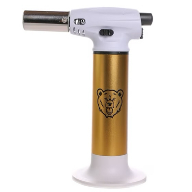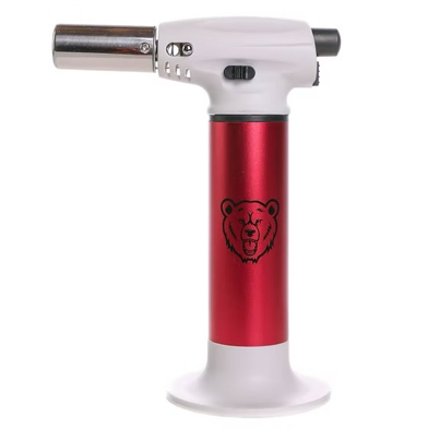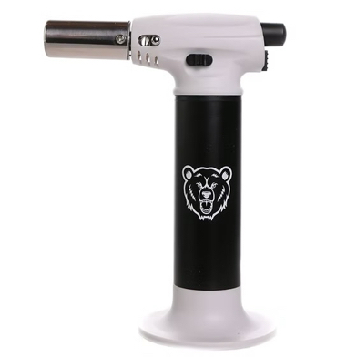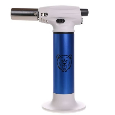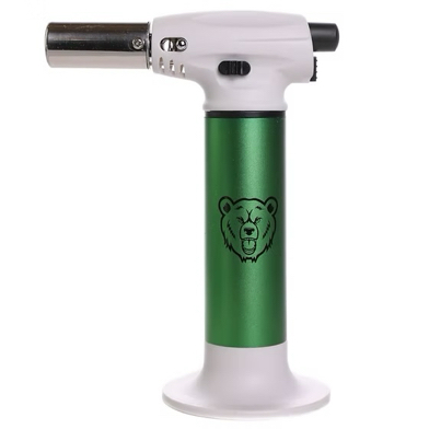 Green Bear's Big Baby Torch is everything you need in a torch in a travel size!  It is Butane refillable and comes with a detachable base.  Flame is adjustable and reaches up to  6" inches and up to 2500º F.